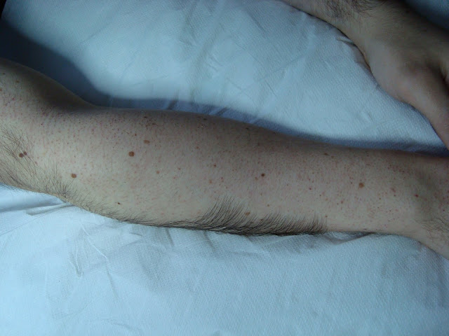 When the distance is a serious handicap, your best bet is to take advantage of travel and do as many hours as possible. This is one of those cases. I worked 6 hours in this arm. The second photo was made after 2 hours of Electrolysis. The third picture is 2 or 3 weeks (I do not remember) after a 6-hour marathon session. The last picture is false regrowth(Read Bono’s book "Treatment Strategy for Electrology) after several months of the first and only clearance.
